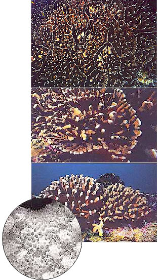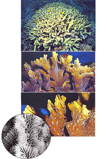 thickets over 2 mtrs across or occur as a few isolated branches. Corallites