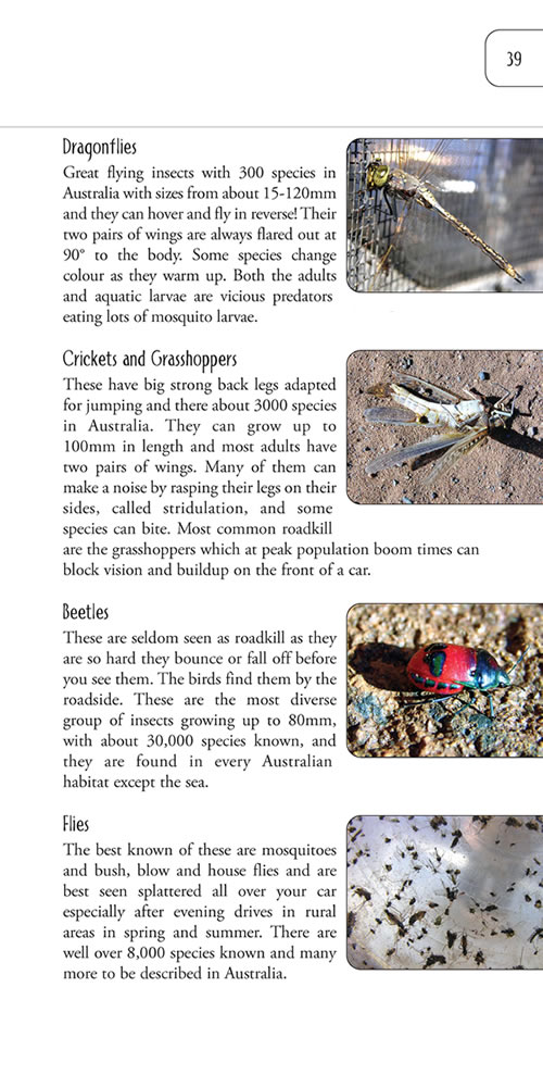 This is the essential 'in-car' book for any road traveller in Australia. With about one million kilometres of road, anyone travelling them is, sadly, very likely to see or cause roadkill - certainly of the millions of small bugs that will be hit.